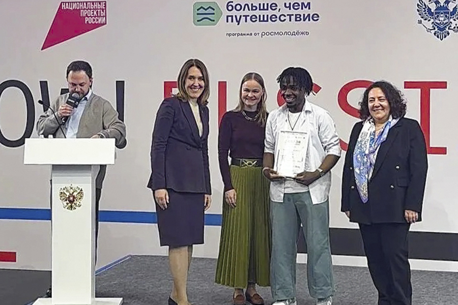 Студент политеха из Мозамбика Белдину Мукуепа побывал в Москве в рамках программы «Больше, чем путешествие» от Росмолодёжи. Диплом за победу в конкурсе политехнику вручила заместитель министра науки и высшего образования Российской Федерации Ольга Петрова.
