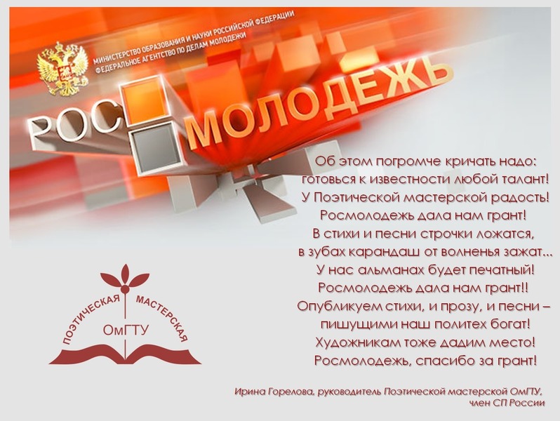 Ирина Горелова, редактор литературно-художественного и публицистического альманаха ОмГТУ "Переливы": "Дважды библиотека ОмГТУ находила возможности публиковать произведения ребят из поэтической мастерской – это были сборники "Свободное дыхание" (1999) и "Я хочу говорить с тобой..." (2014). Но каждый год приходят новые ребята и приносят много новых интересных стихов и прозы. Так родилась идея ежегодного альманаха, пусть даже электронного. Мы очень благодарны Росмолодежи, которая дала нам возможность издать печатный альманах. Это будет значимое событие не только для нашего университета, но для региона в целом. Мы планируем объединить всю творческую молодежь Омска и Омской области, дать новый импульс молодёжной культуре". |